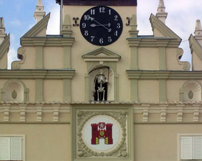 Kostlivec Hnát, stojí ve výklenku havlíčkobrodské radnice. Drží kosu s latinským nápisem „Kterou hodinu nevíš“. Podle pověsti se Hnát se totiž v roce 1472 nechal podplatit, když k tehdy dobře opevněnému městu dorazili Jihlavští měšťané a dal znamení zvonem jihlavským, kteří město obléhali, že je vhodný čas k útoku. Zvonění však varovalo i obyvatelé města, kteří se útoku ubránili a Hnáta shodili do příkopu, kde byl ukamenován. Později byl na tomto místě vztyčen tzv. Hnátův kámen.