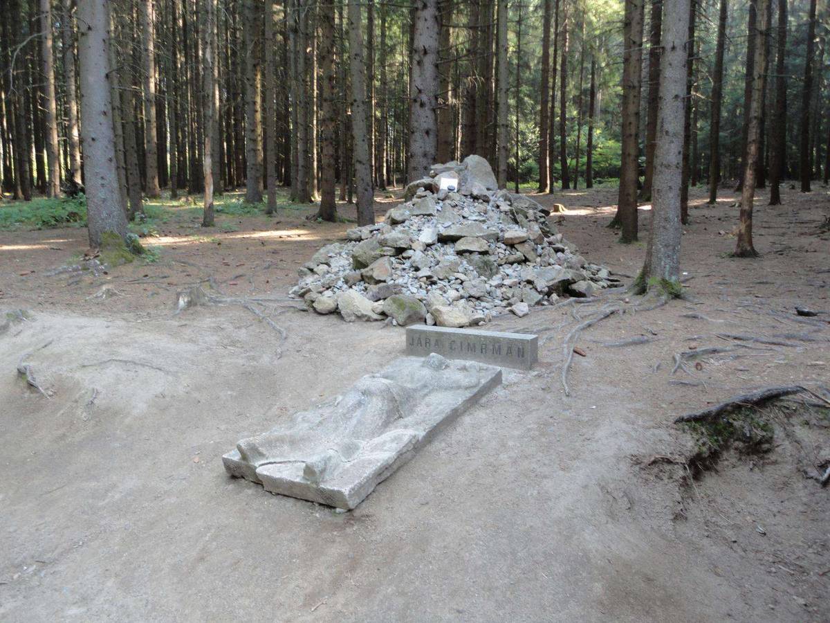 U zastávky je Cimrmanova socha po dopadu na zem, díky které je známa podoba Cimrmanova pozadí. Není ale známa podoba jeho tváře.